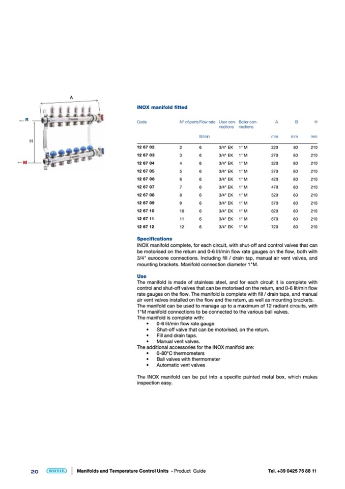 The manifold can be used to manage up to a maximum of 12 radiant circuits, with