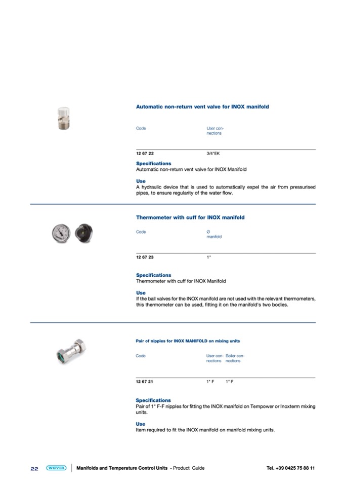 If the ball valves for the INOX manifold are not used with the relevant thermometers,