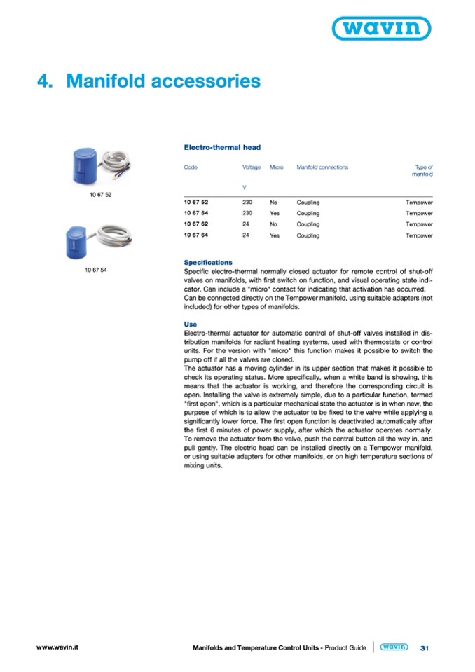 pull gently. The electric head can be installed directly on a Tempower manifold,