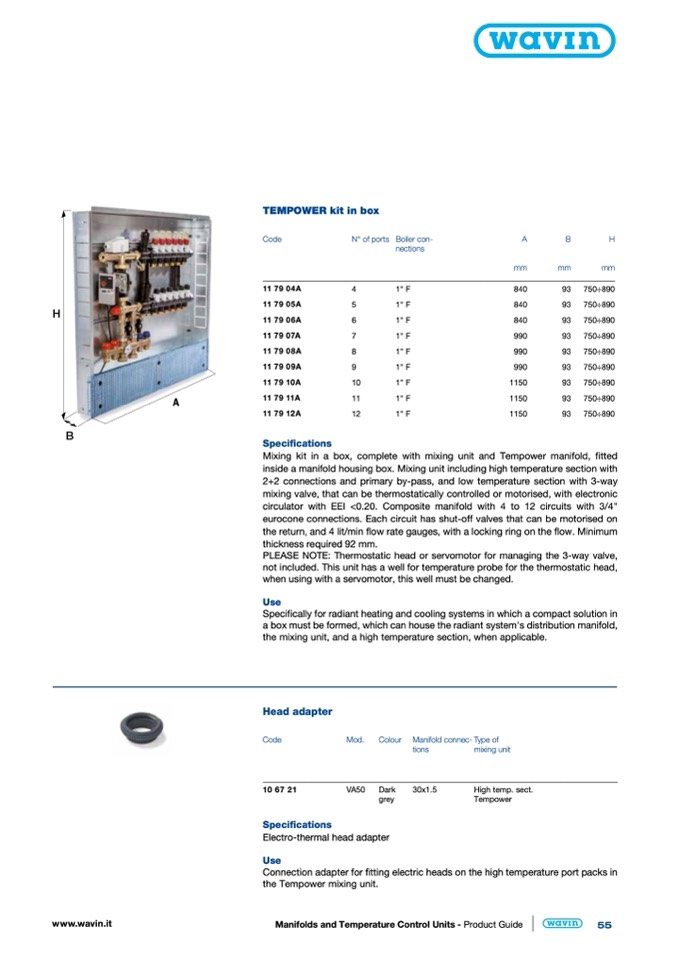 circulator with EEI <0.20. Composite manifold with 4 to 12 circuits with 3/4"