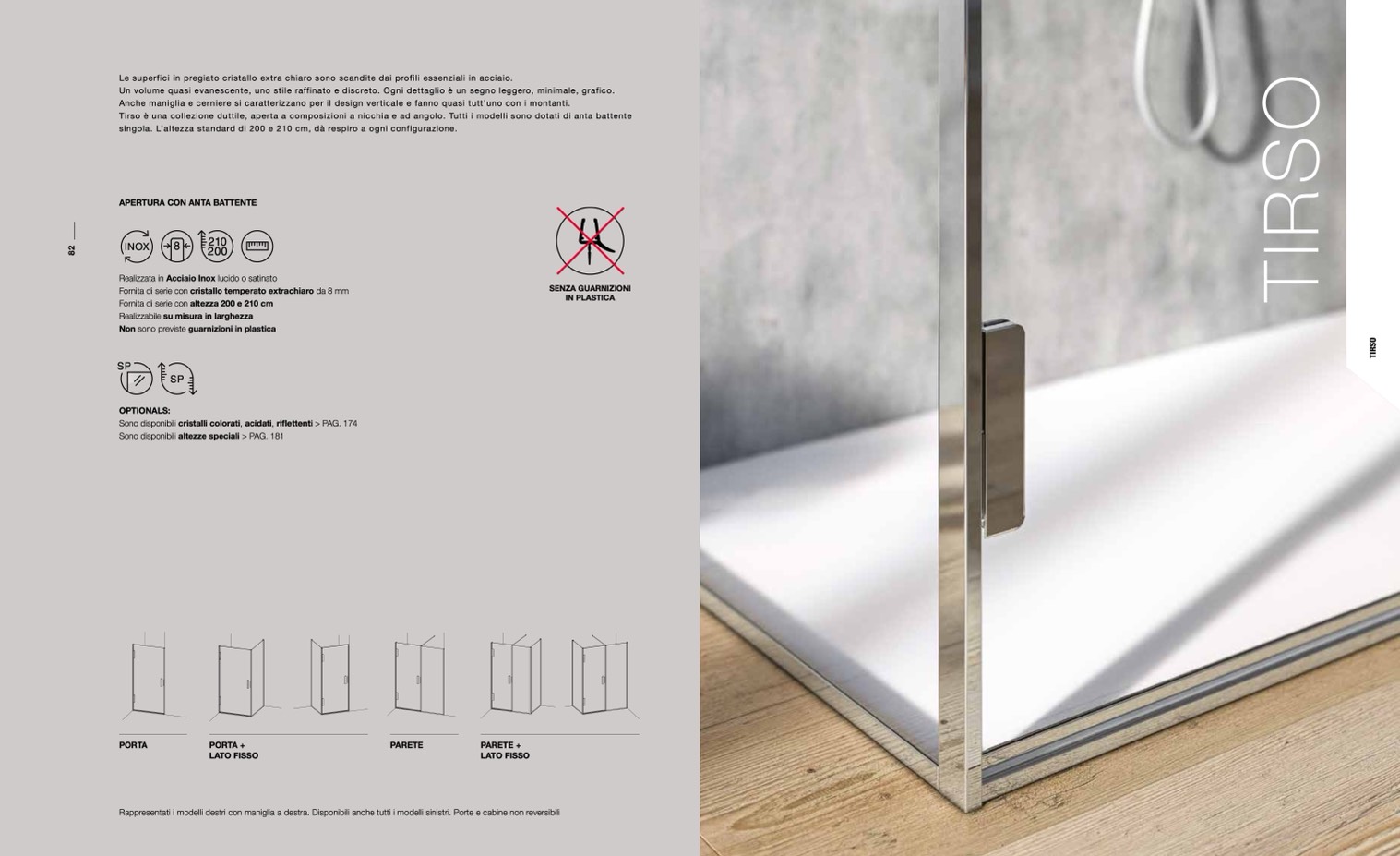 Rappresentati i modelli destri con maniglia a destra. Disponibili anche tutti i modelli sinistri. Porte e cabine non reversibili