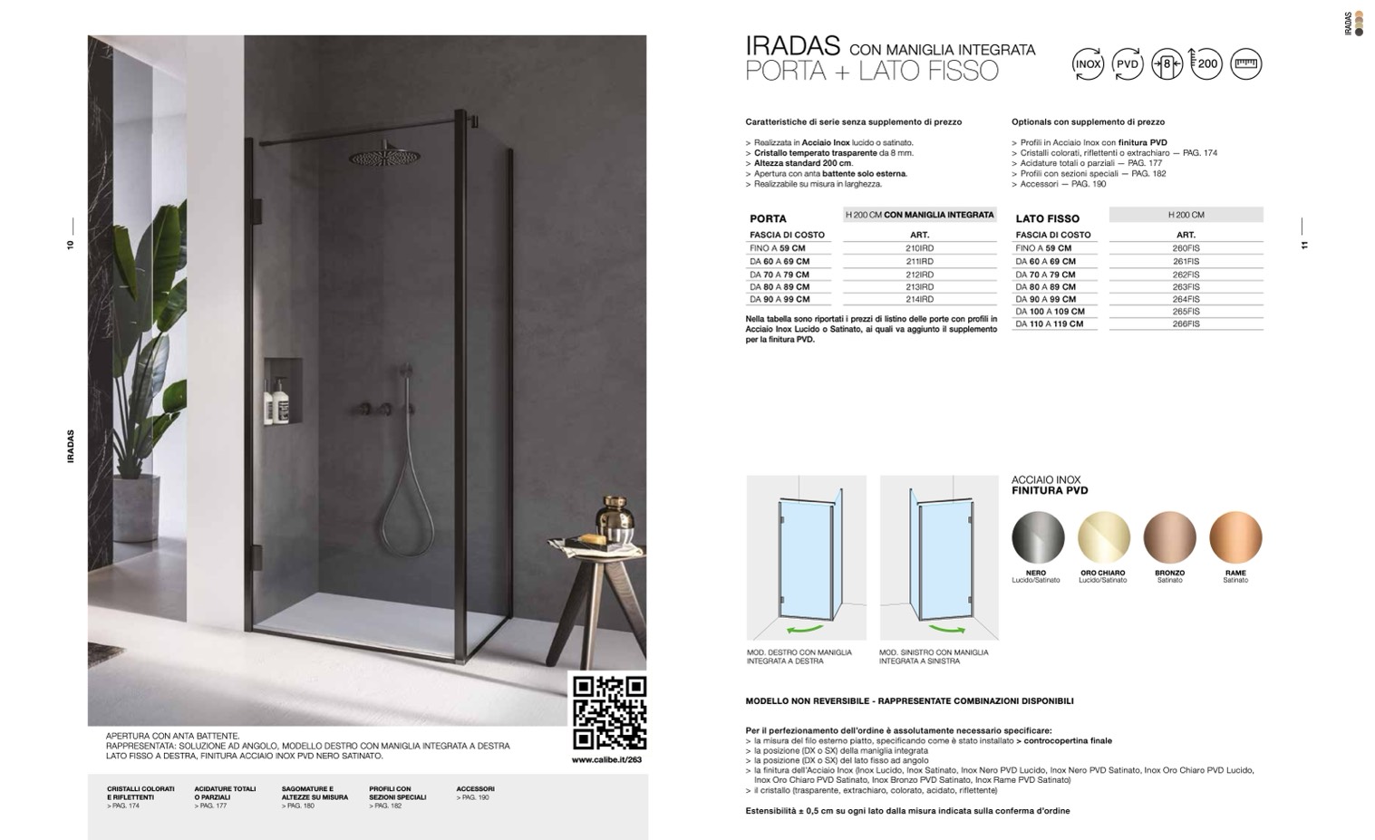 > la finitura dell’Acciaio Inox (Inox Lucido, Inox Satinato, Inox Nero PVD Lucido, Inox Nero PVD Satinato, Inox Oro Chiaro PVD Lucido,