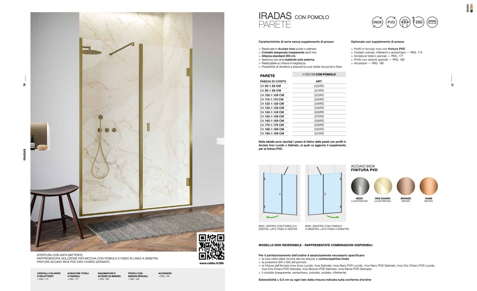 > la finitura dell’Acciaio Inox (Inox Lucido, Inox Satinato, Inox Nero PVD Lucido, Inox Nero PVD Satinato, Inox Oro Chiaro PVD Lucido,