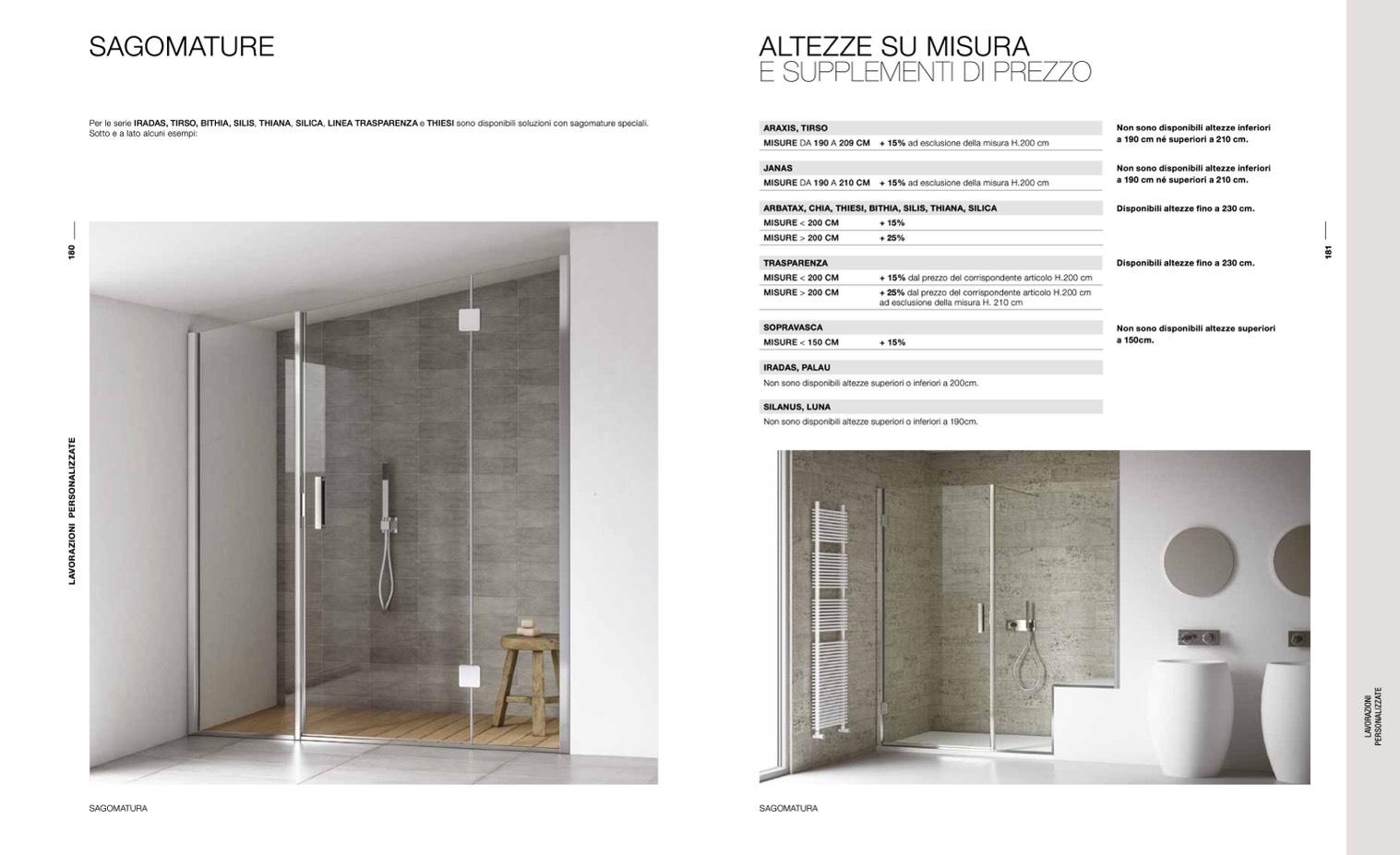 Per le serie IRADAS, TIRSO, BITHIA, SILIS, THIANA, SILICA, LINEA TRASPARENZA e THIESI sono disponibili soluzioni con sagomature speciali.