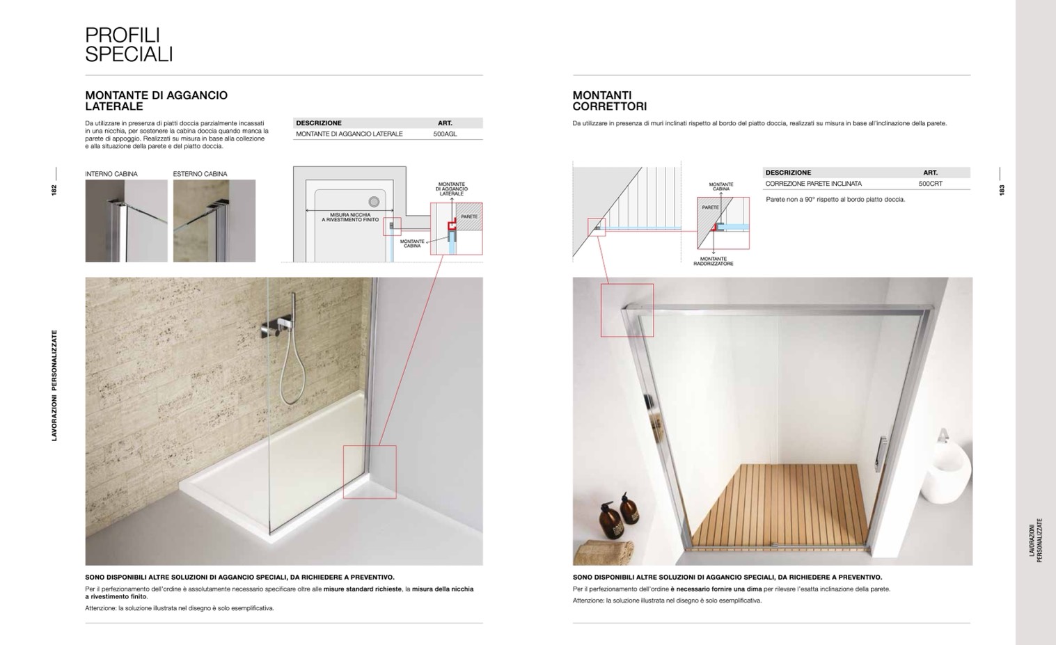 Da utilizzare in presenza di muri inclinati rispetto al bordo del piatto doccia, realizzati su misura in base all’inclinazione della parete.