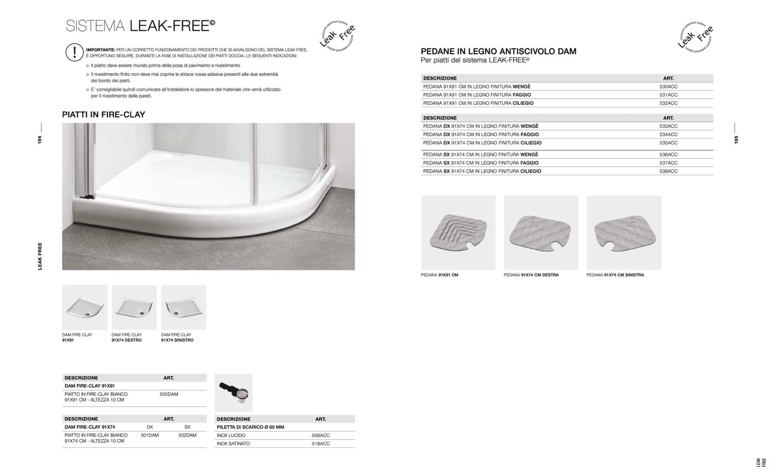IMPORTANTE: PER UN CORRETTO FUNZIONAMENTO DEI PRODOTTI CHE SI AVVALGONO DEL SISTEMA LEAK FREE,