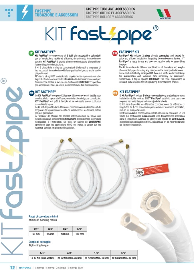 Kit FastPipe® è comprensivo di 2 tubi già raccordati e collaudat