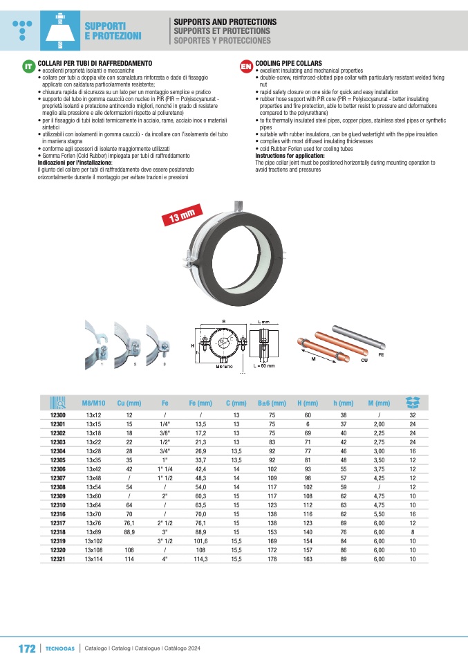 • utilizzabili con isolamenti in gomma caucciù - da incollare con l’isolamento del tub