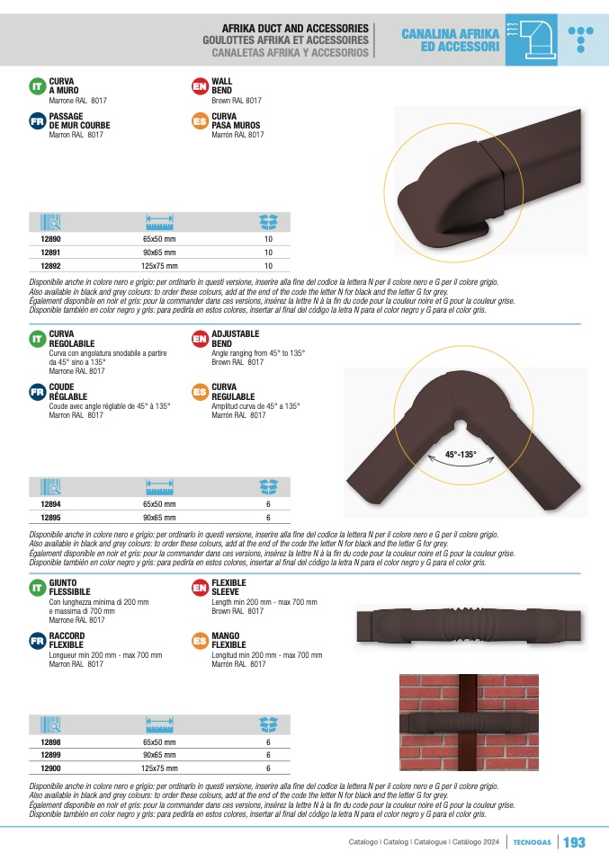 Also available in black and grey colours: to order these colours, add at the end of the code the letter N for black and the letter G for grey