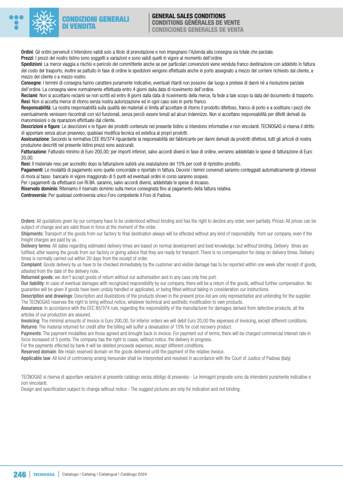 TECNOGAS si riserva di apportare variazioni al presente catalogo senza obbligo di preavviso - Le immagini proposte sono da intendersi puramente indicative