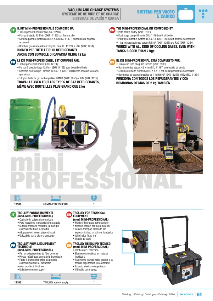 • Bombole gas ricaricabili da 1 kg R410A (SKU 11253) e R32 (SKU 11254