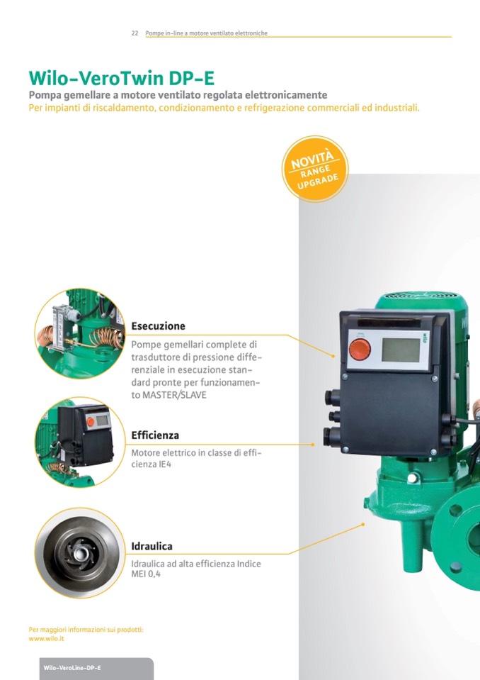 Pompa gemellare a motore ventilato regolata elettronicamente