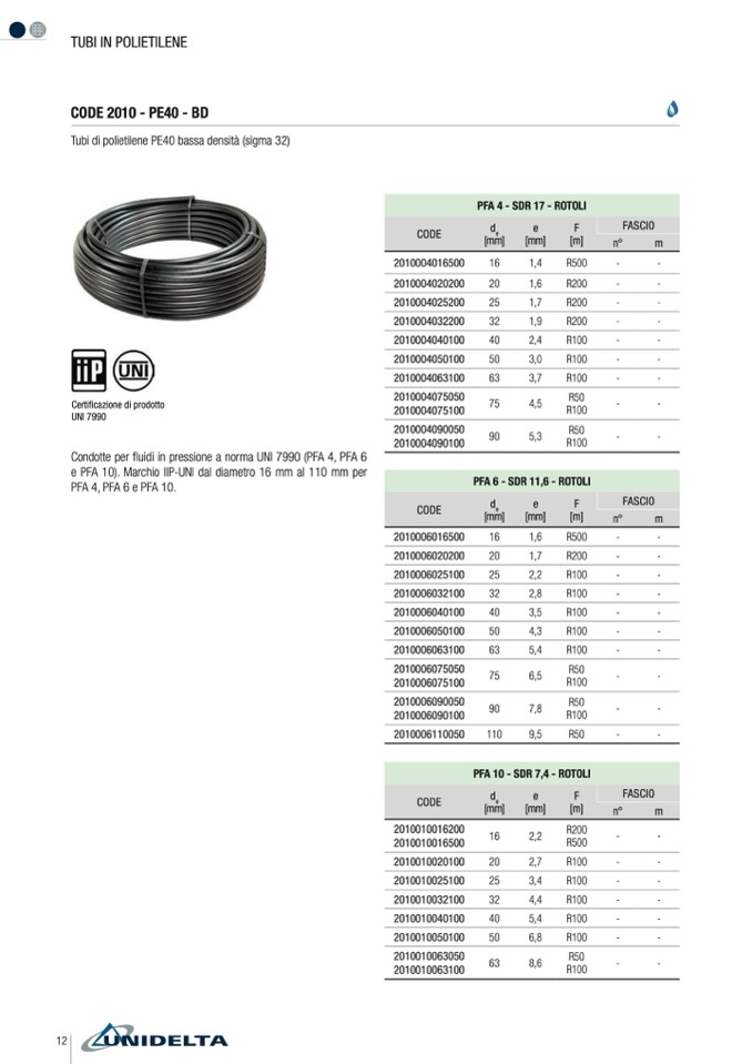 e PFA 10). Marchio IIP-UNI dal diametro 16 mm al 110 mm per