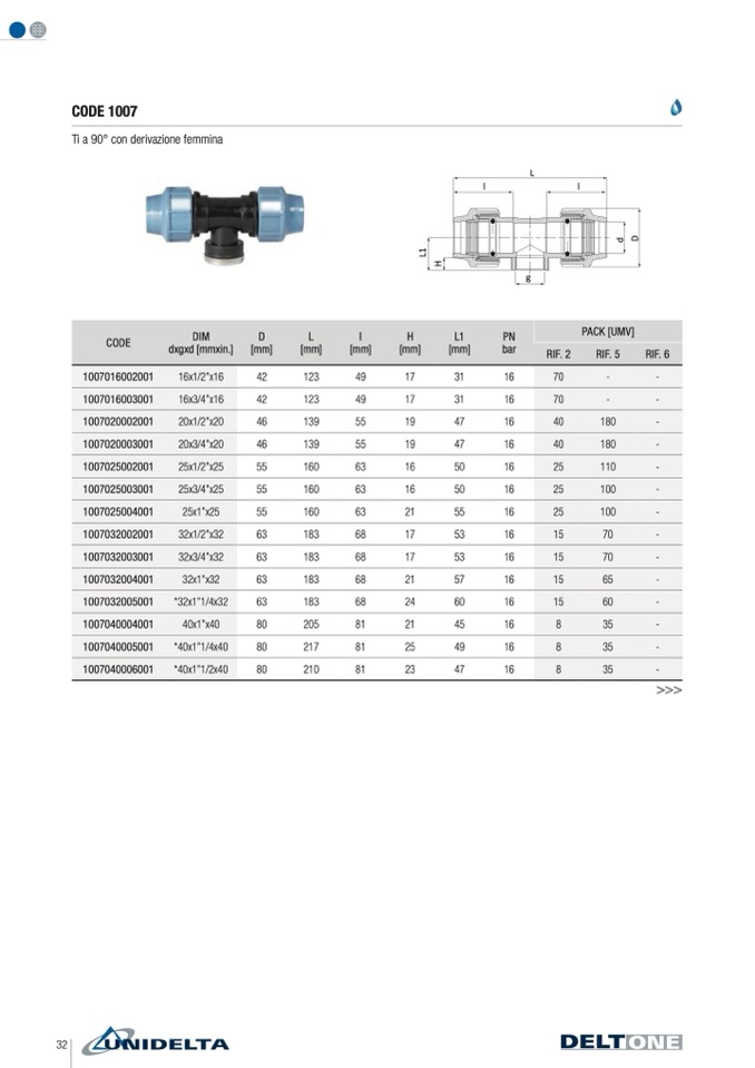 Ti a 90° con derivazione femmina