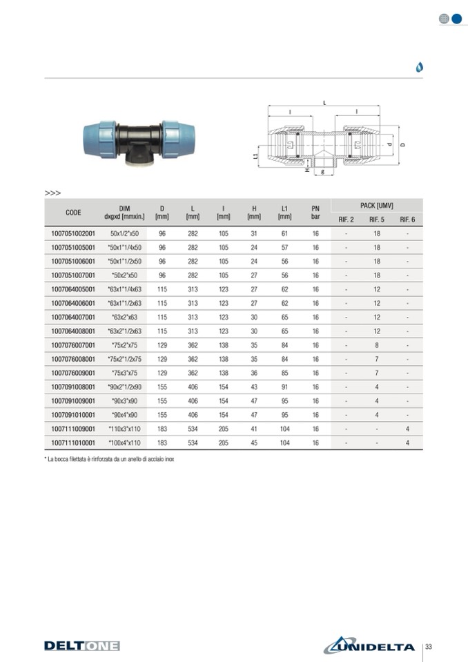 * La bocca filettata è rinforzata da un anello di acciaio inox