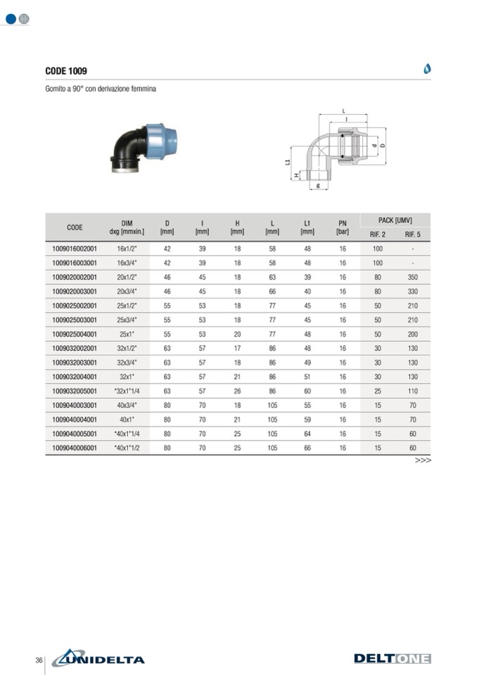 Gomito a 90° con derivazione femmina