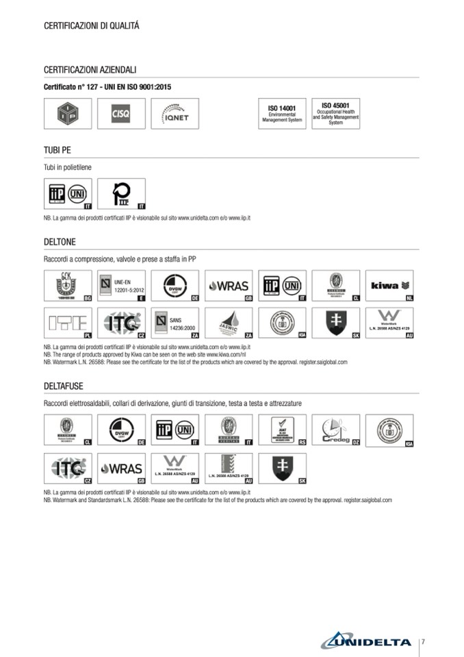 NB. La gamma dei prodotti certificati IIP è visionabile sul sito www.unidelta.com e/o www.iip.it
