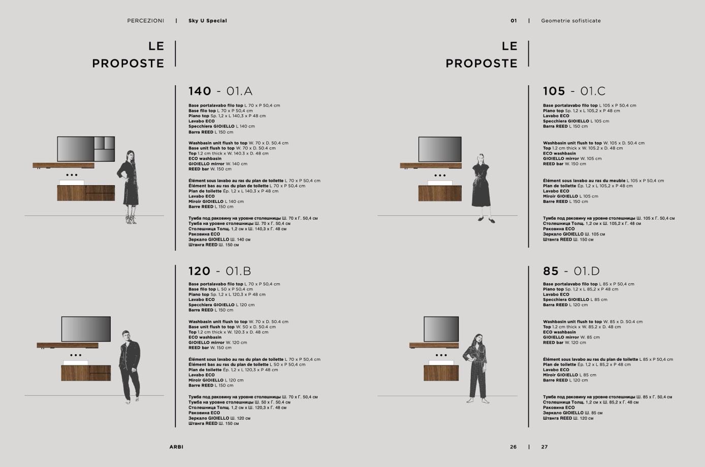 Washbasin unit flush to top W. 105 x D. 50.4 cm