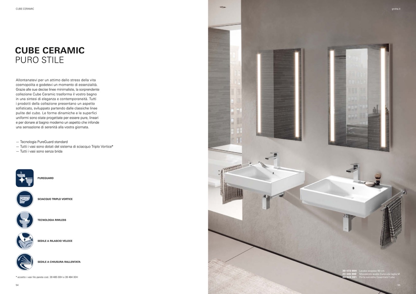 * eccetto i vasi filo parete cod. 39 485 00H e 39 484 00H