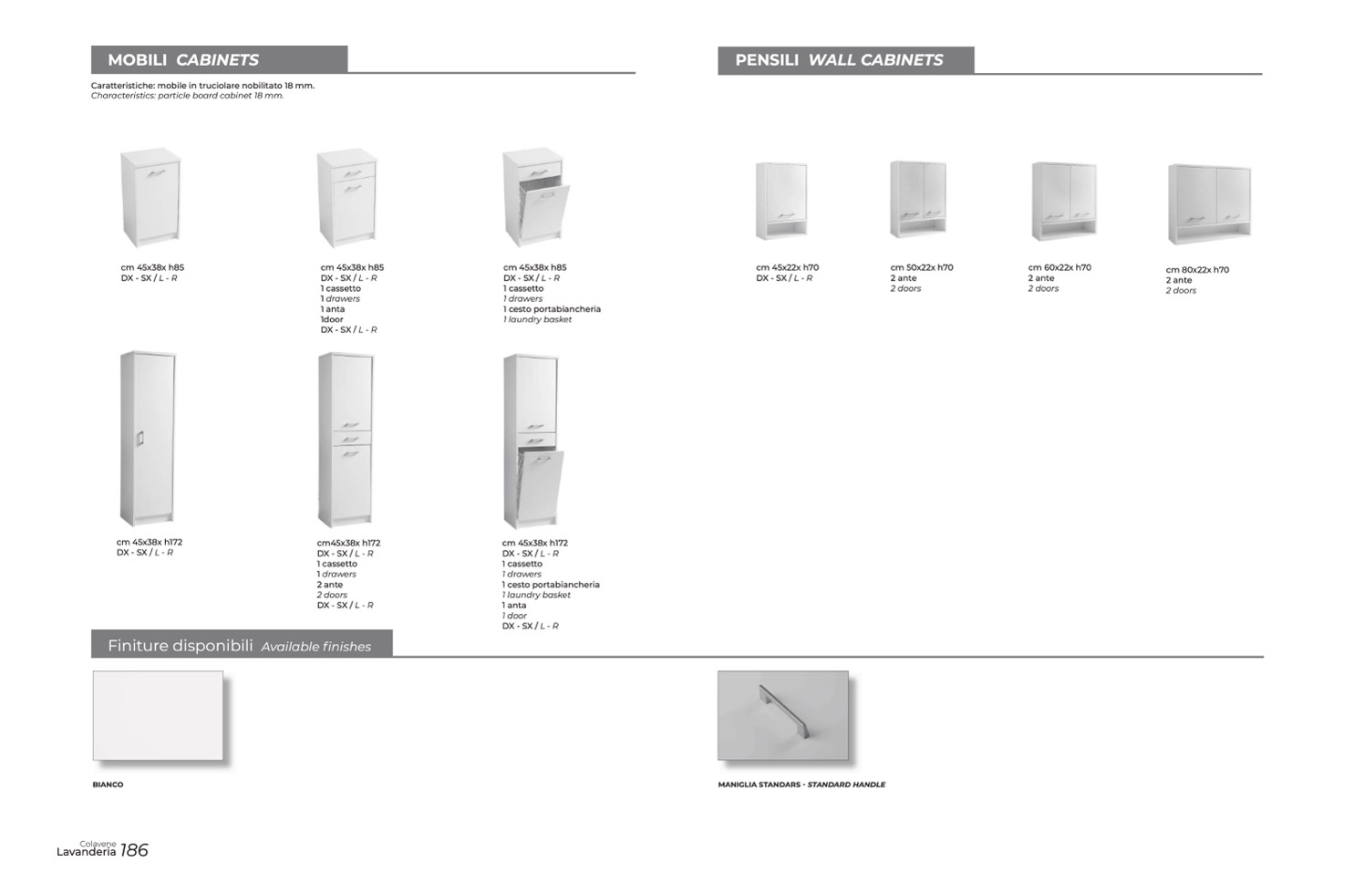 Caratteristiche: mobile in truciolare nobilitato 18 mm.