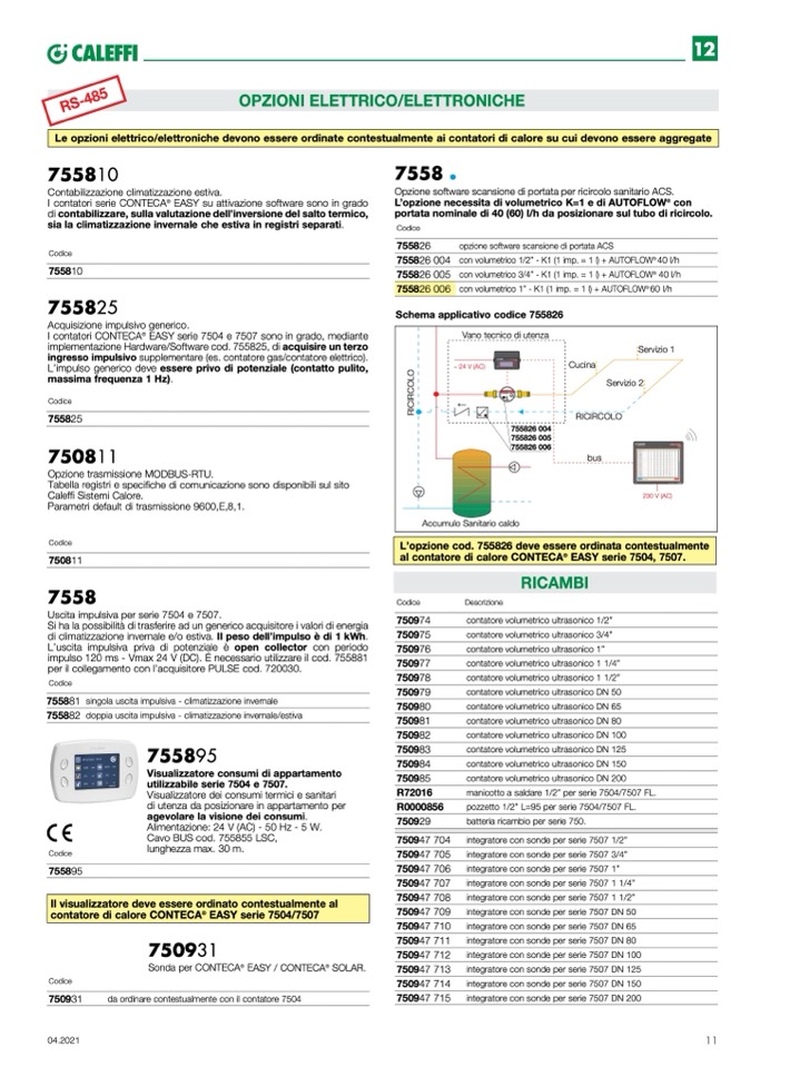 Le opzioni elettrico/elettroniche devono essere ordinate contestualmente ai contatori di calore su cui devono essere aggregate