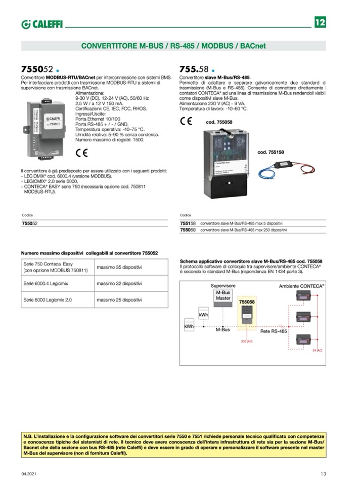 755058 convertitore slave M-Bus/RS-485 max 250 dispositivi
