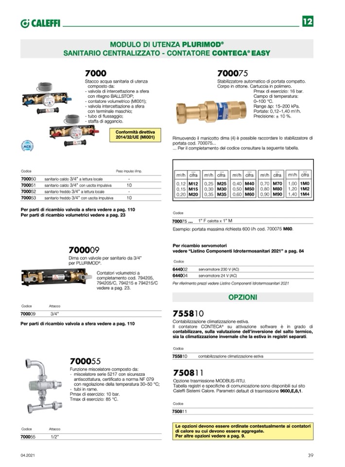 vedere “Listino Componenti Idrotermosanitari 2021” a pag. 84
