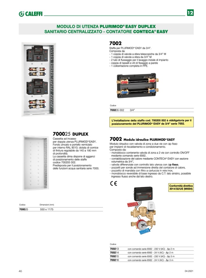 L’installazione della staffa cod. 700205 002 è obbligatoria per il