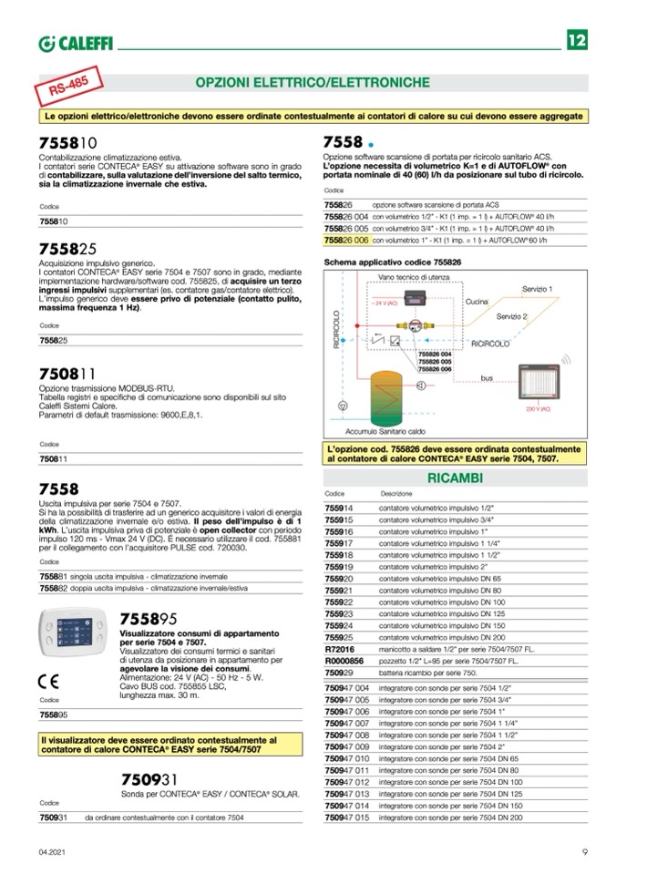 Le opzioni elettrico/elettroniche devono essere ordinate contestualmente ai contatori di calore su cui devono essere aggregate