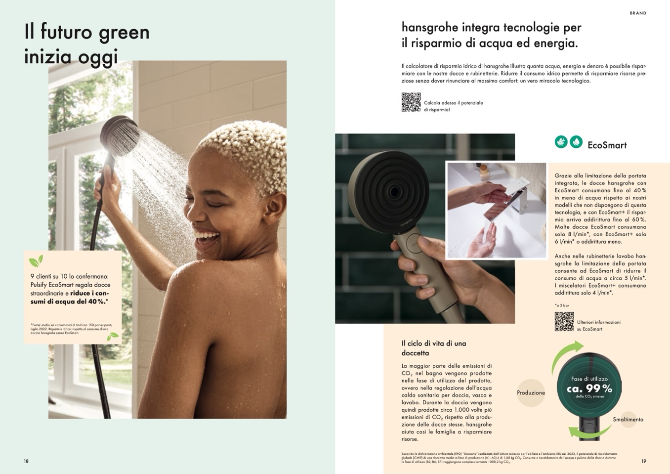 Il calcolatore di risparmio idrico di hansgrohe illustra quanta acqua, energia e denaro è possibile rispar-