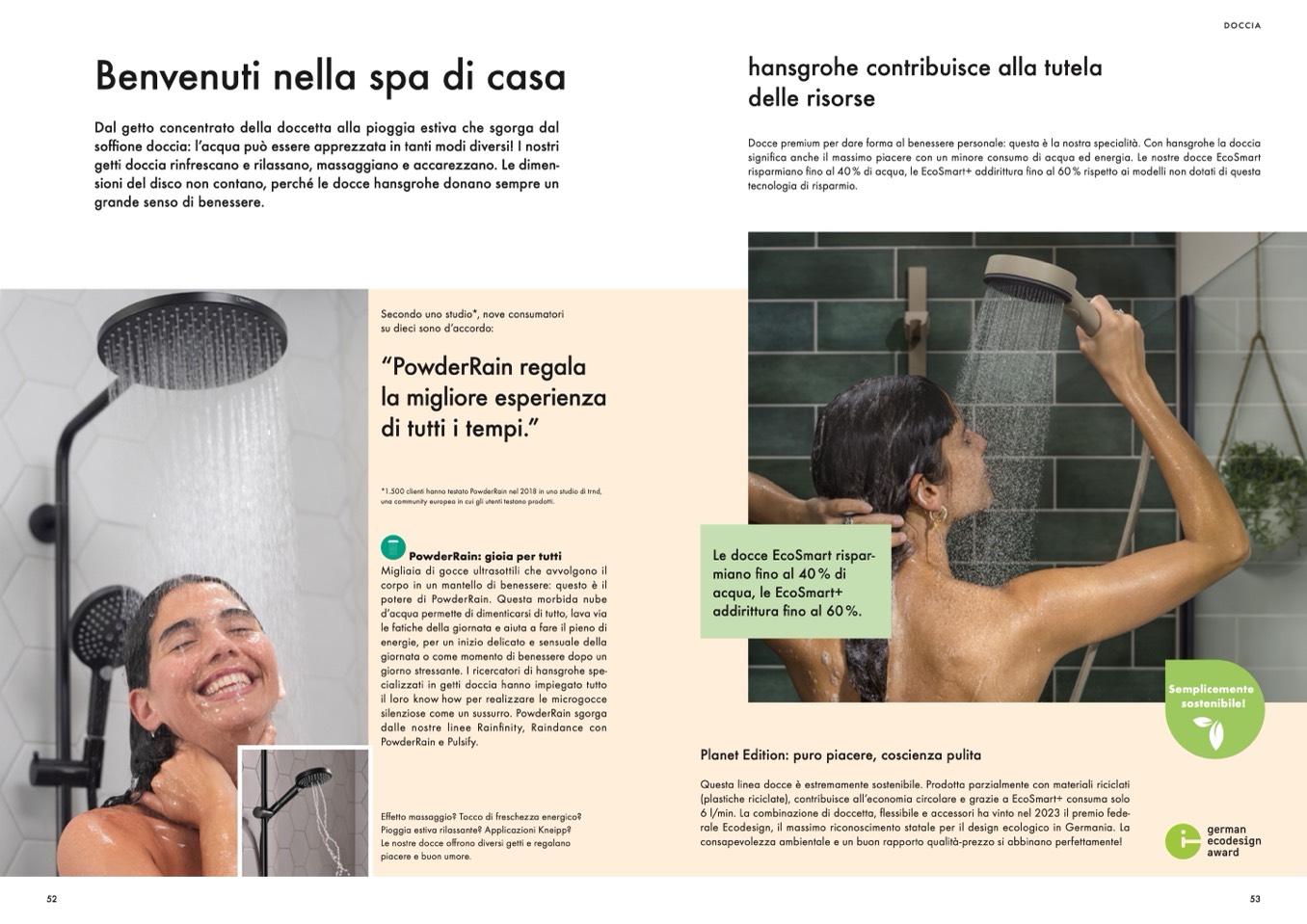 fica anche il massimo piacere con un minore consumo di acqua ed energia. Le nostre docce EcoSmart