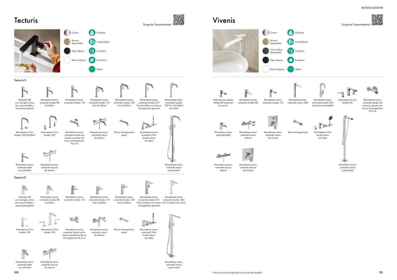 Finiture e funzioni disponibili a seconda del modello.