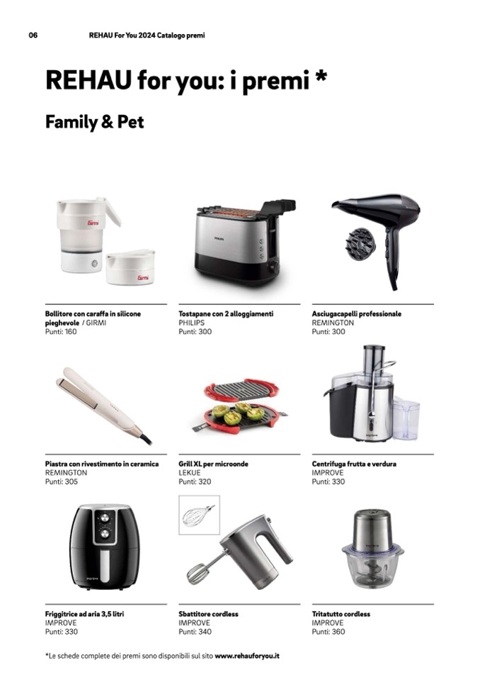 *Le schede complete dei premi sono disponibili sul sito www.rehauforyou.it