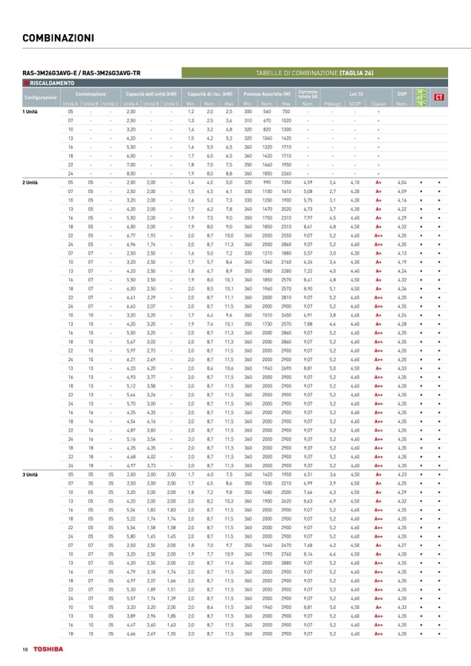 TABELLE DI COMBINAZIONE (TAGLIA 26)