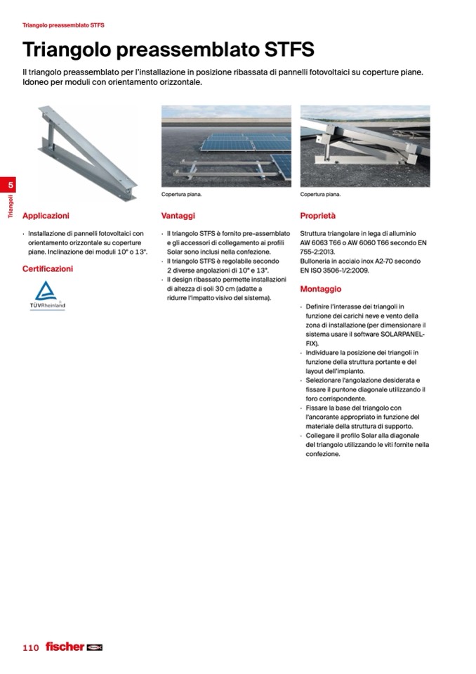 Il triangolo preassemblato per l’installazione in posizione ribassata di pannelli fotovoltaici su coperture piane.