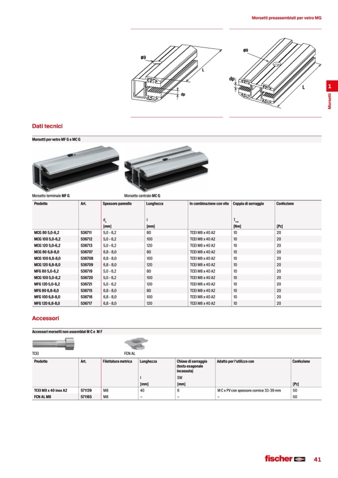 Morsetti per vetro MF G e MC G