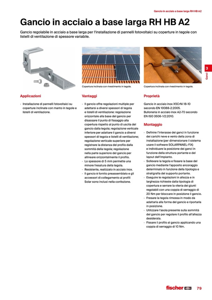 Gancio regolabile in acciaio a base larga per l‘installazione di pannelli fotovoltaici su coperture in tegole con