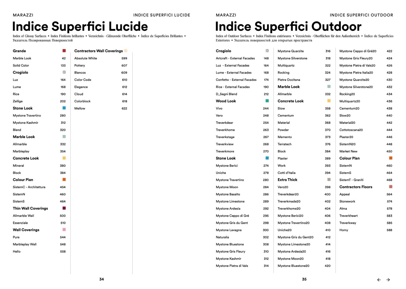 Index of Glossy Surfaces • Index Finitions brillantes • Verzeichnis - Glänzende Oberfläche • Índice de Superficies Brillantes •