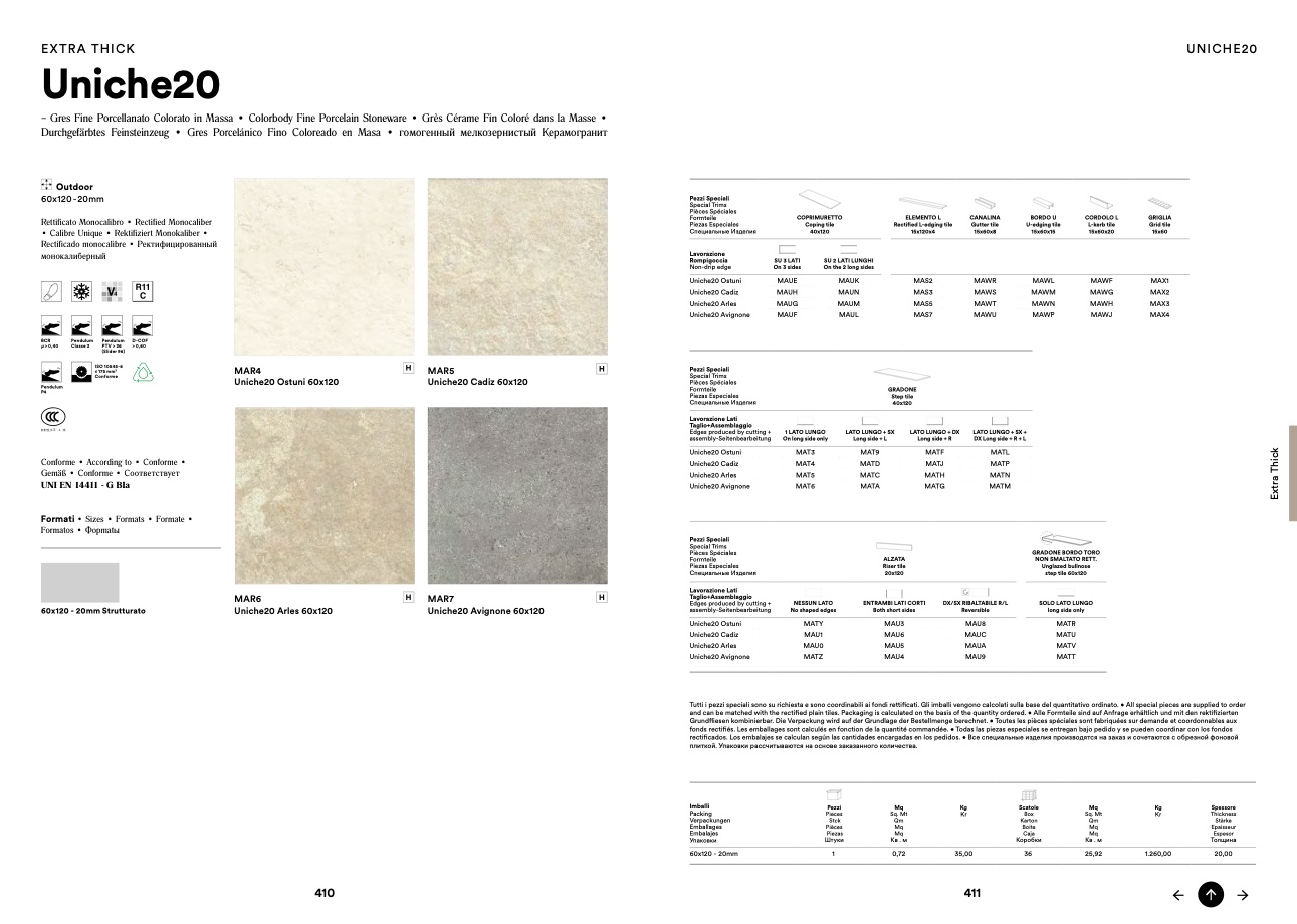 and can be matched with the rectified plain tiles. Packaging is calculated on the basis of the quantity ordered. • Alle Formteile sind auf Anfrage erhältlich und mit den rektifizierten