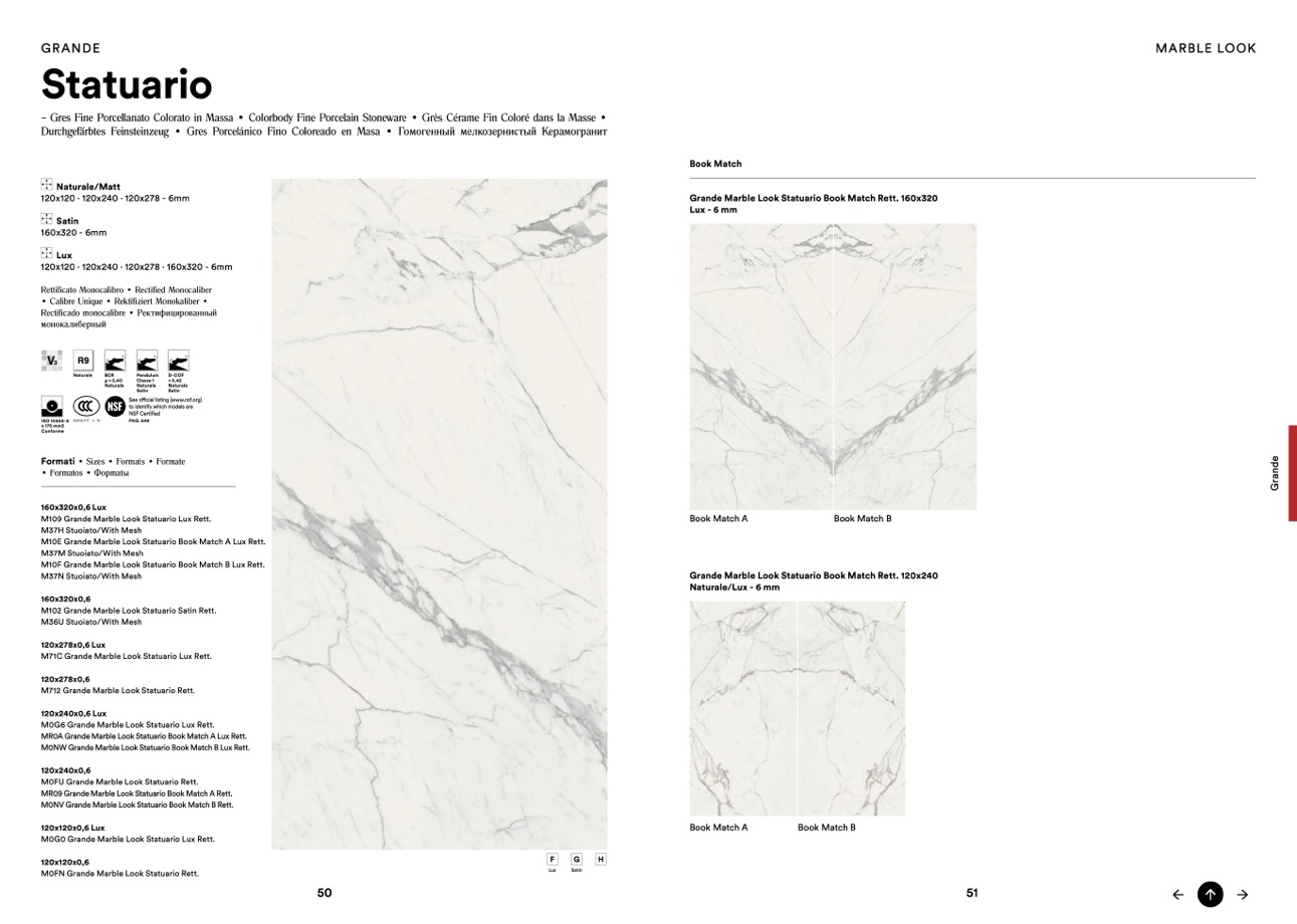 Grande Marble Look Statuario Book Match Rett. 120x240
