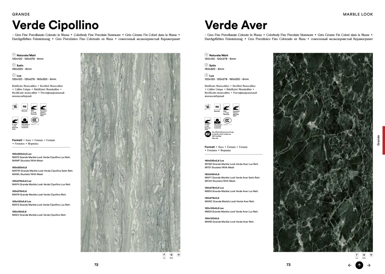 MAFW Grande Marble Look Verde Cipollino Satin Rett.