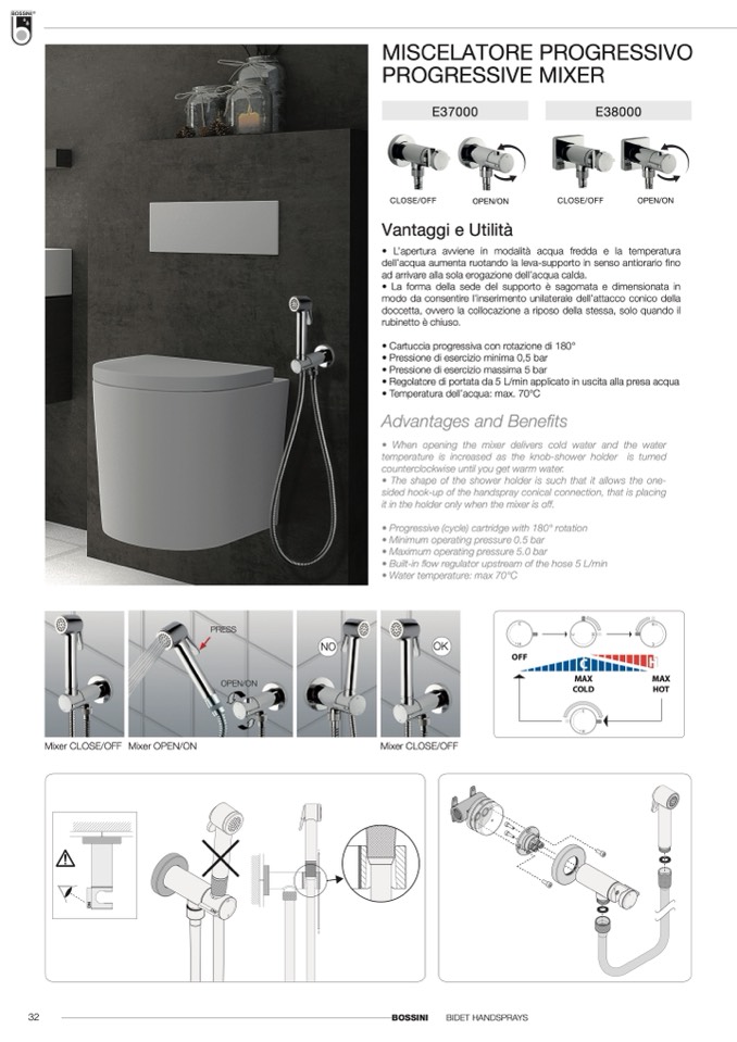 • Regolatore di portata da 5 L/min applicato in uscita alla presa acqua