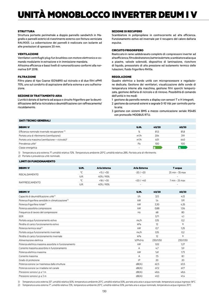 1) Temperatura aria esterna 33°, umidità relativa 50%, temperatura ambiente 25°C, umidità relativa 50%, portata aria aria e acqua nominale, temperatura acqua ingresso 16°C.