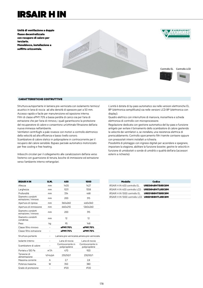 IRSAIR H IN 1000 controllo EL