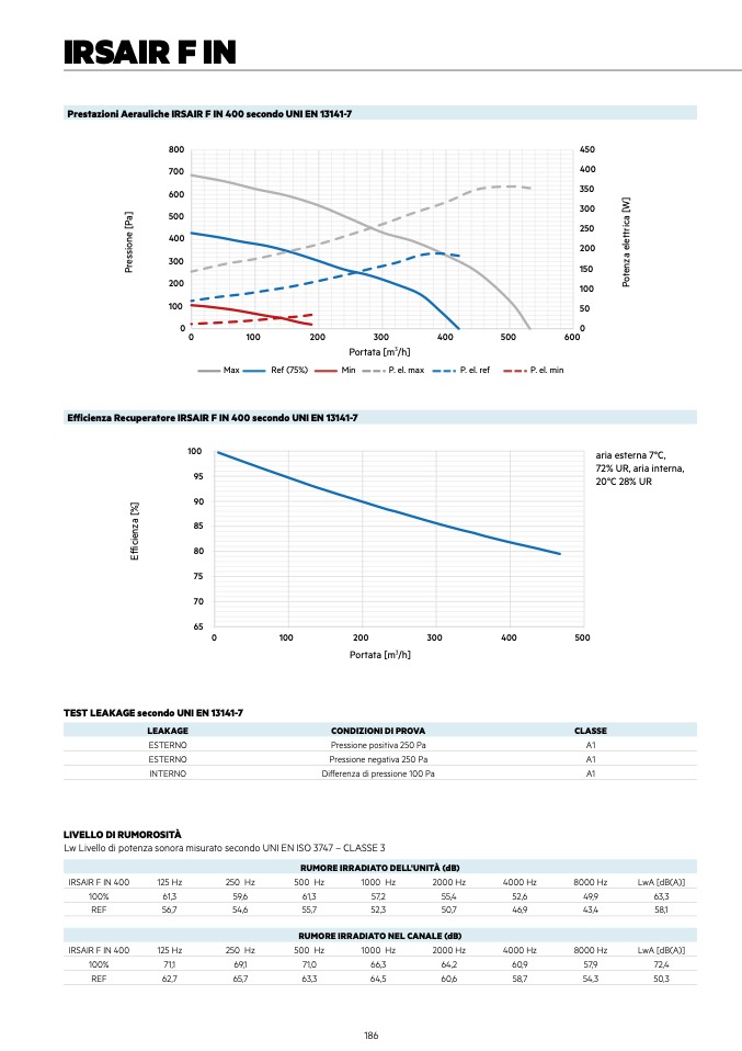 Efficienza Recuperatore IRSAIR F IN 400 secondo UNI EN 13141-7
