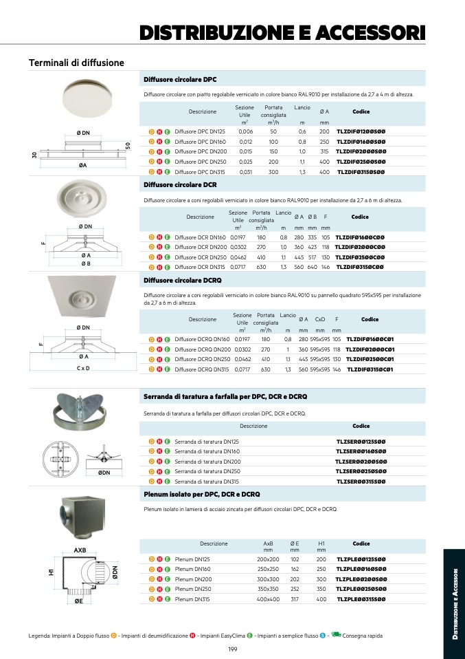 Legenda: Impianti a Doppio flusso D - Impianti di deumidificazione H - Impianti EasyClima E - Impianti a semplice flusso S -