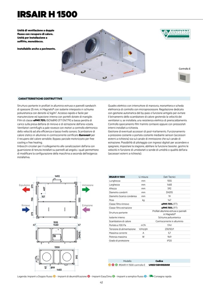 Legenda: Impianti a Doppio flusso D - Impianti di deumidificazione H - Impianti EasyClima E - Impianti a semplice flusso S -