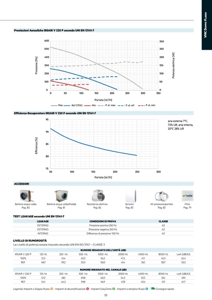 Prestazioni Aerauliche IRSAIR V 220 P secondo UNI EN 13141-7