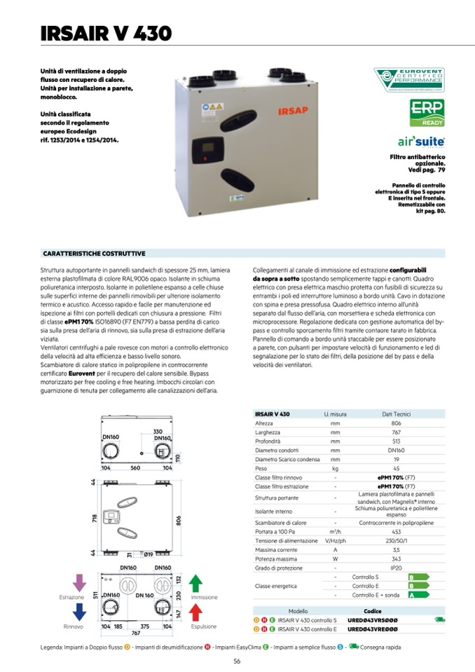 Legenda: Impianti a Doppio flusso D - Impianti di deumidificazione H - Impianti EasyClima E - Impianti a semplice flusso S -