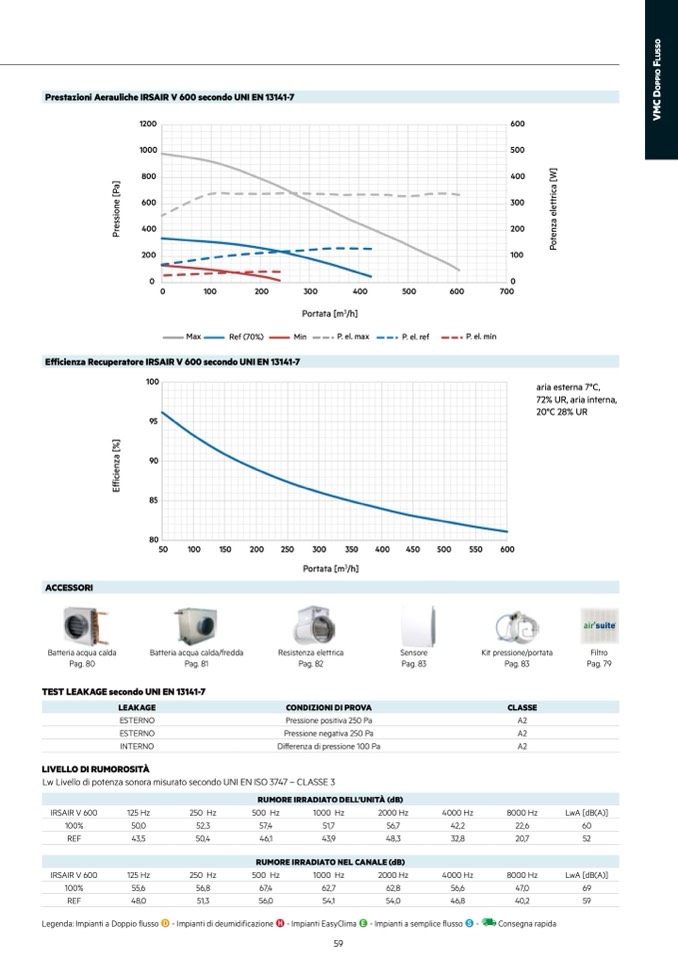 Prestazioni Aerauliche IRSAIR V 600 secondo UNI EN 13141-7